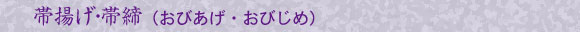 帯揚げ(おびあげ)は、着物の着付けに用いる小道具の一種で、帯枕を包むもの。帯から少し見えるため、着物や帯とのコーディネイトをすることが多い。 帯締め(おびじめ)は、着物の着付けをするために必要な小道具の一つで、帯を固定するのに用いる紐。帯締め紐。