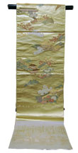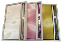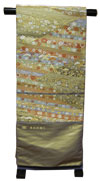 袋帯は礼装用の帯として、留袖や振袖などの着物などに多く用いられています。 むさしやでは、手織りの1品ものから一般的な帯まで多数取り揃えております。